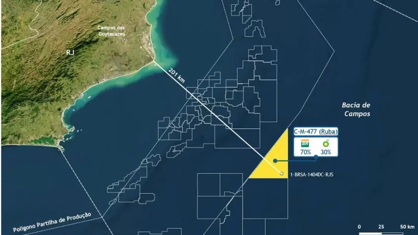A Petrobras localizou a presença de hidrocarbonetos no pré-sal da Bacia de Campos. A identificação foi no bloco C-M-477 do poço exploratório perfurado no Setor SC-AP4 da região. De acordo com a nota da companhia, o poço 1-BRSA-1404DC-RJS está localizado a 201 km da costa do Estado do Rio de Janeiro, em profundidade d’água de 2.984 metros. De acordo com a empresa, as amostras seguirão para análises laboratoriais, que dirão se será possível dar continuidade ao estudo do potencial da área. Segundo a petroleira, a sua atuação no bloco C-M-477, na Bacia de Campos, “está alinhada à estratégia de recomposição das reservas de petróleo e gás por meio da atuação em áreas de fronteira exploratória, em parceria com outras empresas, assegurando o atendimento à demanda nacional de energia durante a transição energética”. Com 70% de participação, a Petrobras opera o bloco C-M-477, em parceria com a empresa BP, que participa com o restante. “O bloco é oriundo da 16ª Rodada de Licitações da ANP, em regime de concessão”, concluiu a nota.